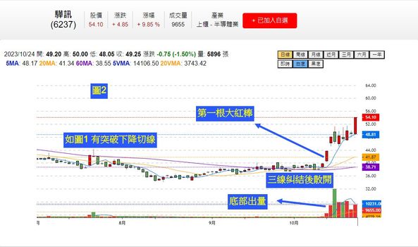 1. 觀察個股突破下降切線
