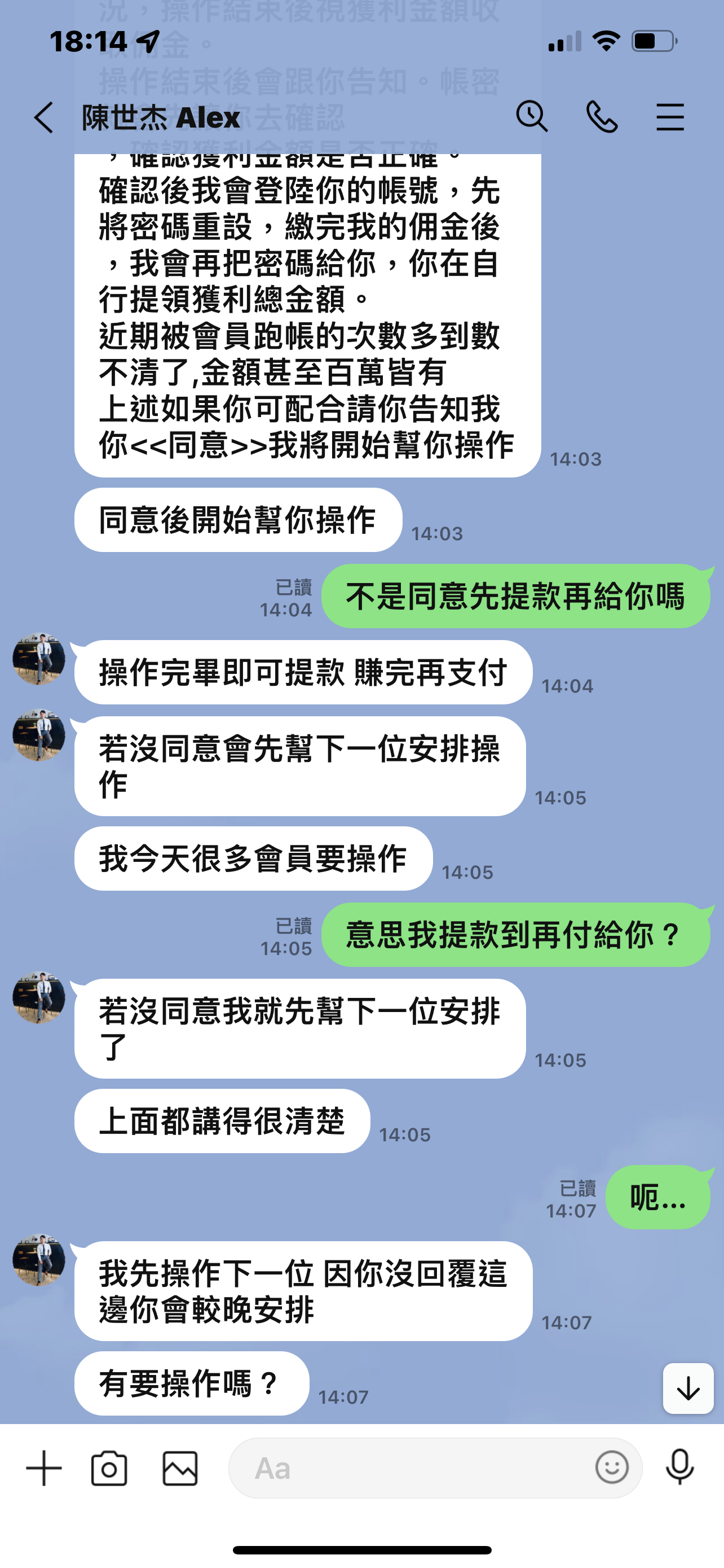 前幾天網路上認識一個人!在代操的我也沒多想什麼 想說5000試看看