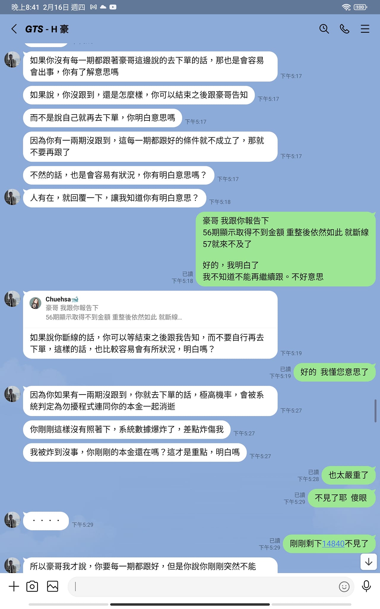 我戲路也是有的,後面亂扯我媽管嚴,直到他說可能提告,我直接封鎖。