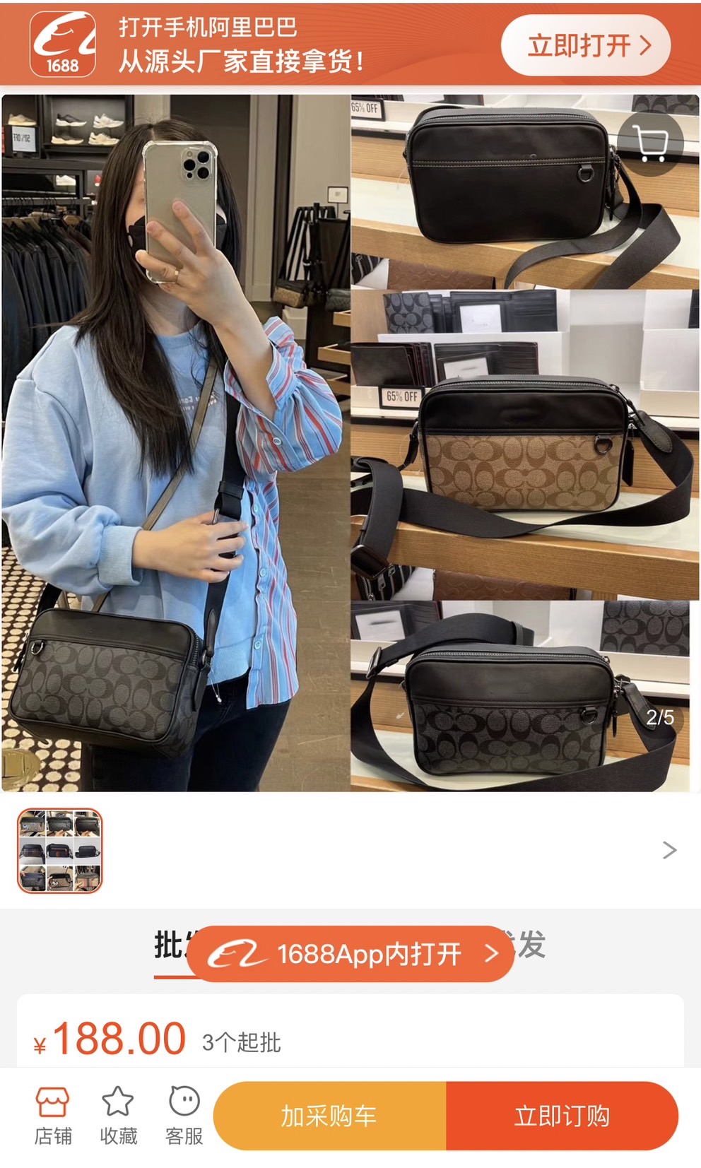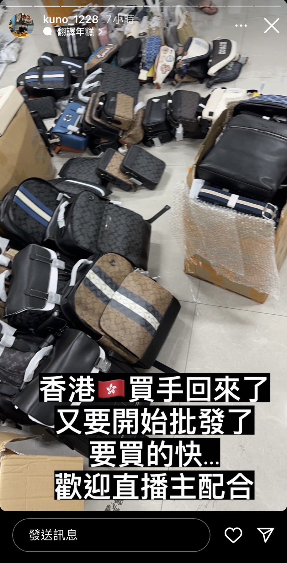 各位看抖音盤子們要注意了 假貨古準備要在各直播台賣假COACH了 香港買手在阿里巴巴進貨