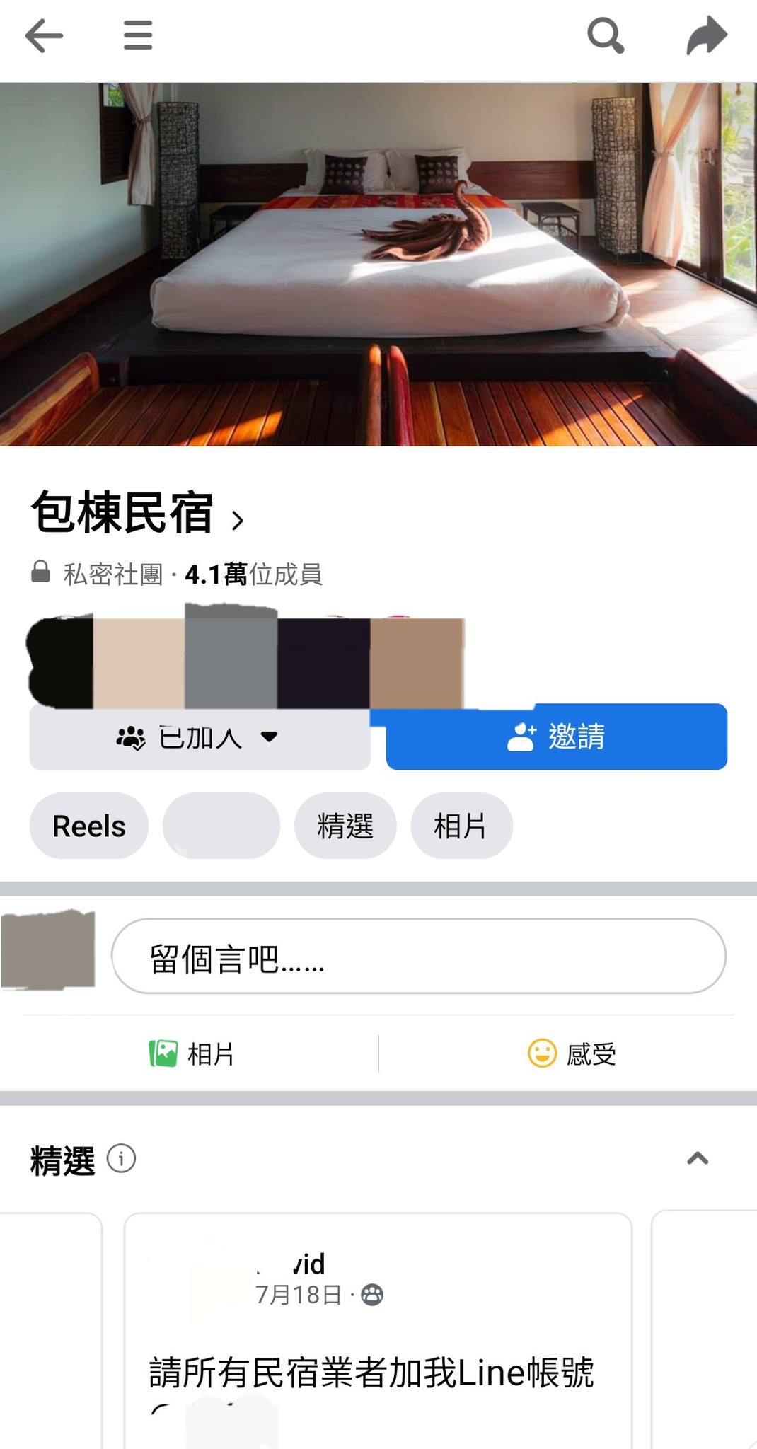 有一個“包棟民宿”社團。