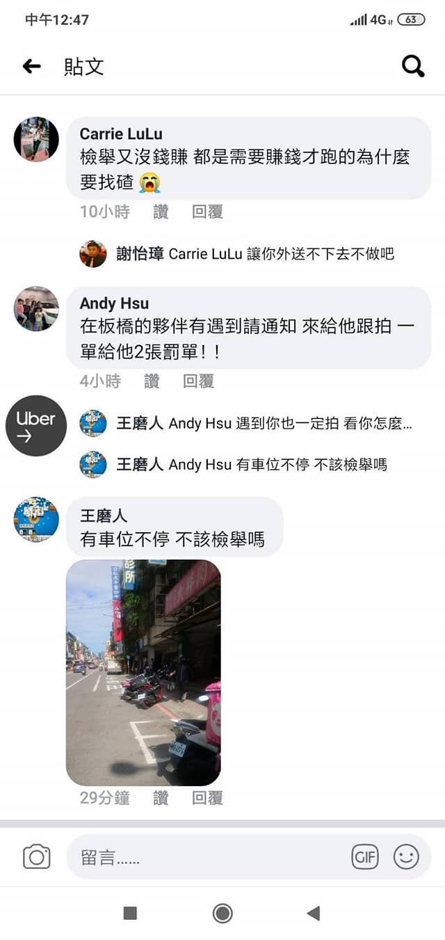 常在對街或後面跟蹤同行外送或其它汽機車駕駛拍照