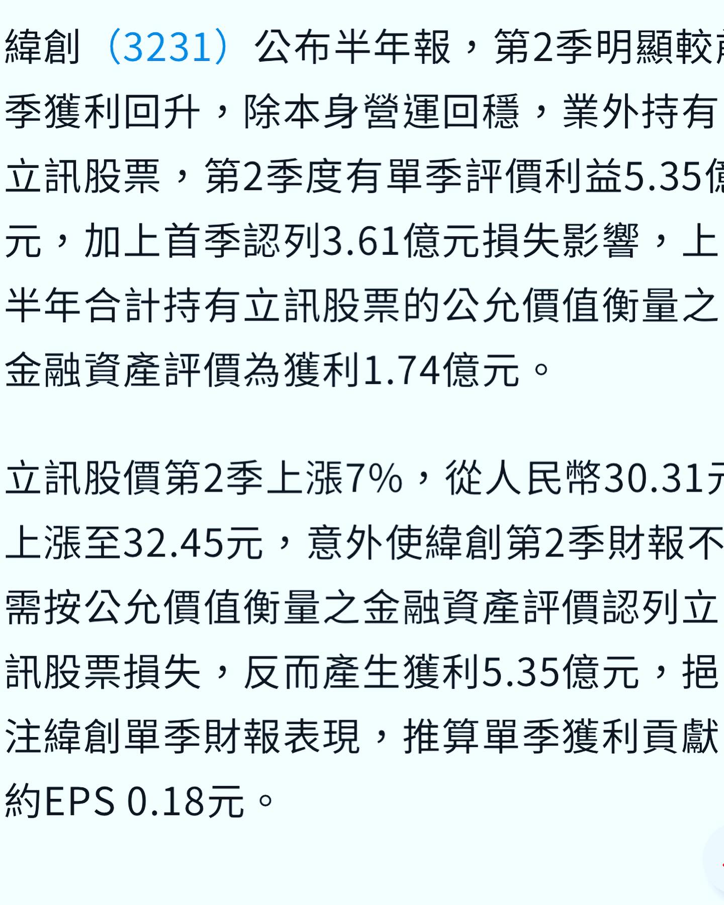 對於緯創第二季財報數字公佈