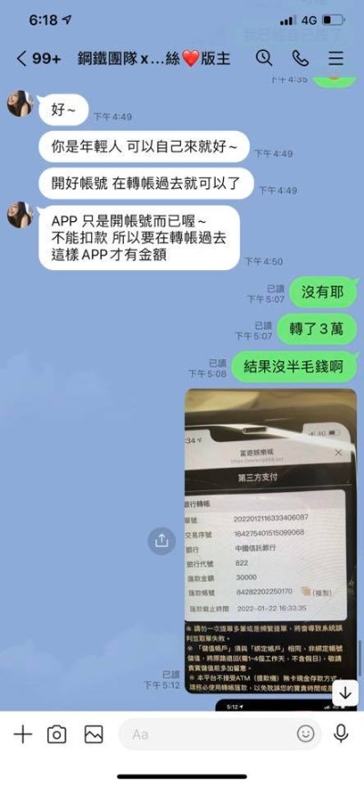 我這次是第一次在富遊娛樂城儲值,而且為了想領多一點回饋,我還儲了不少錢。註冊的時候我明明就已經乖乖綁定好帳戶,結果錢沒入帳就算了,客服居然還睜眼說瞎話,說我「沒有使用綁定帳戶儲值」。這真的是我看過最大規模的詐騙手法!接著更扯的來了,他們又改口說我匯款的帳戶跟綁定的不同。我註冊時明明就只有這一個帳號,我是要去哪裡生出第二個帳戶來匯款?