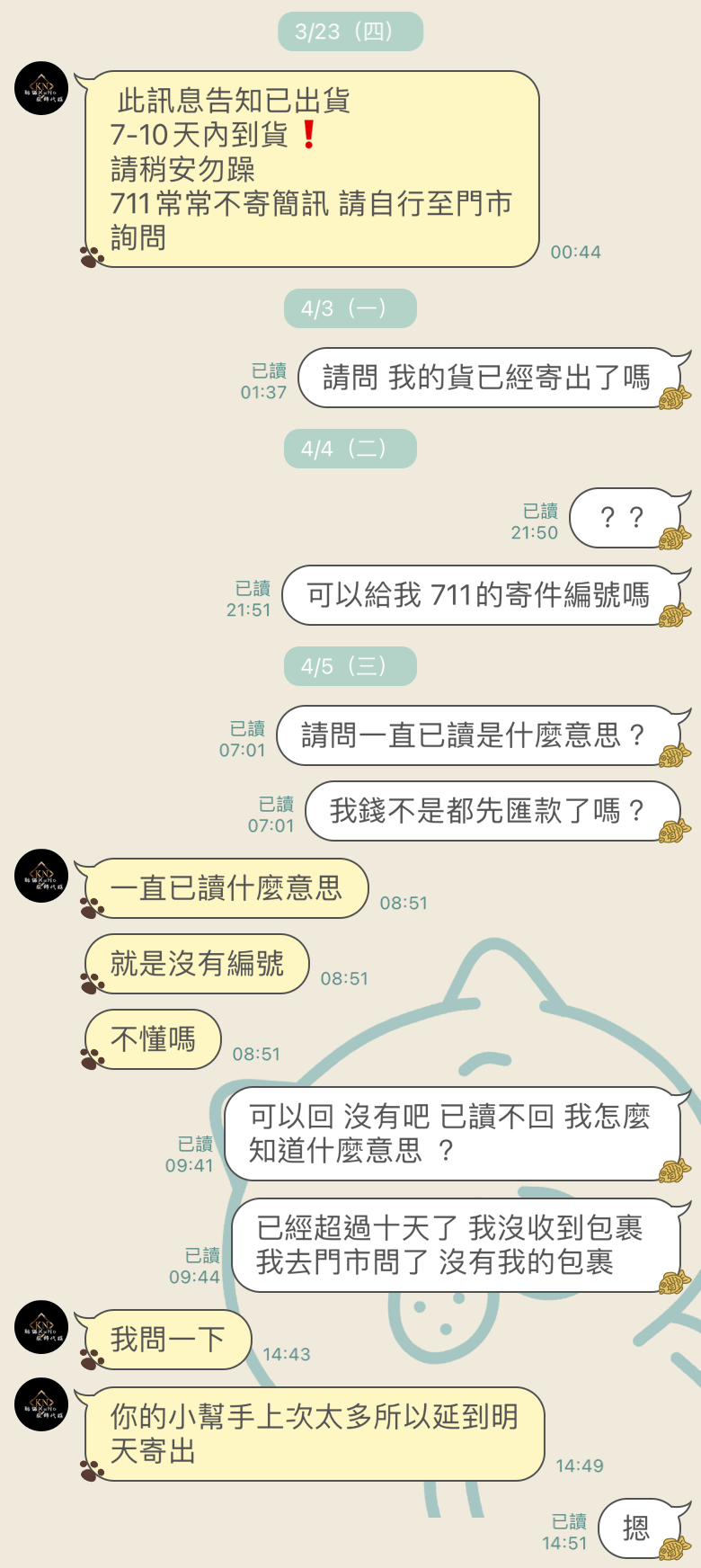 根本沒出貨 態度又不好