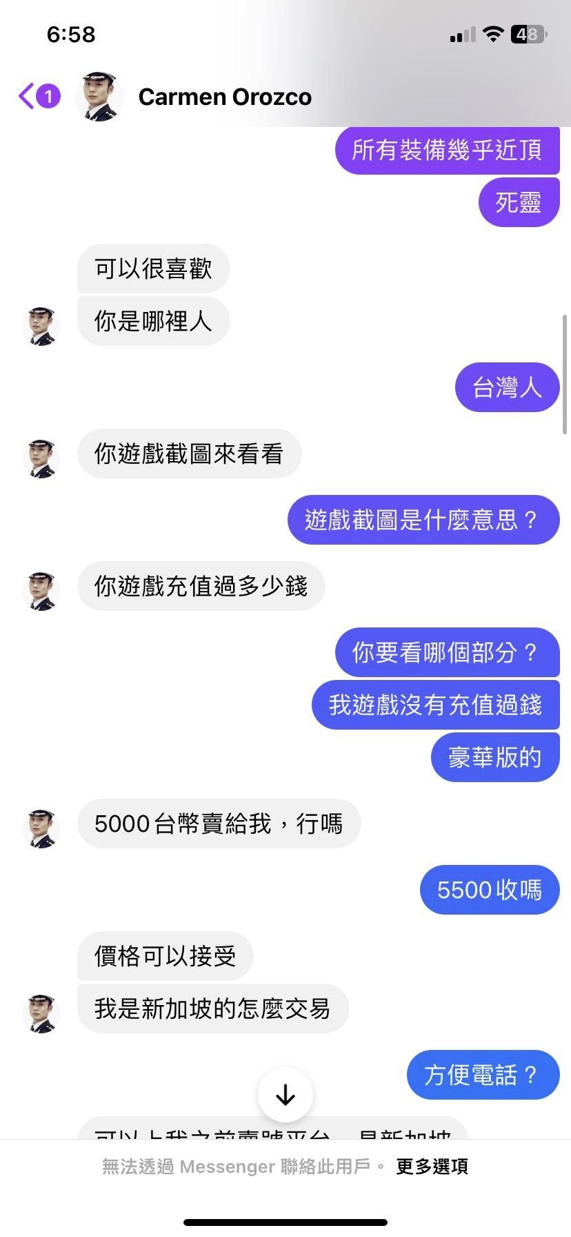 這是詐騙嗎? 他自稱一位新加坡人要跟我買遊戲的帳號