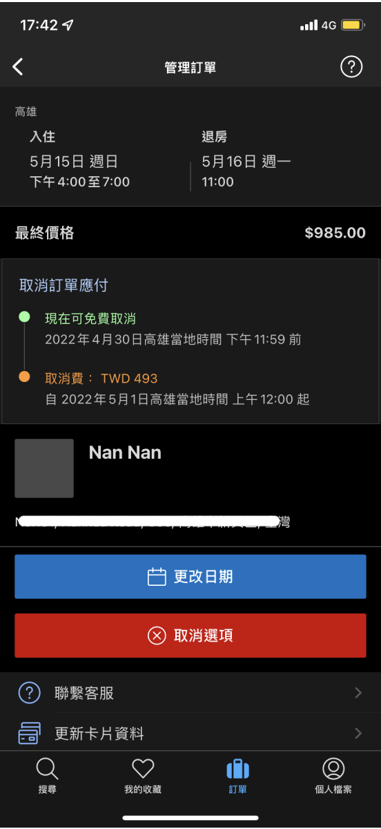 我倆就又到訂房網做更改訂房日期,結果!